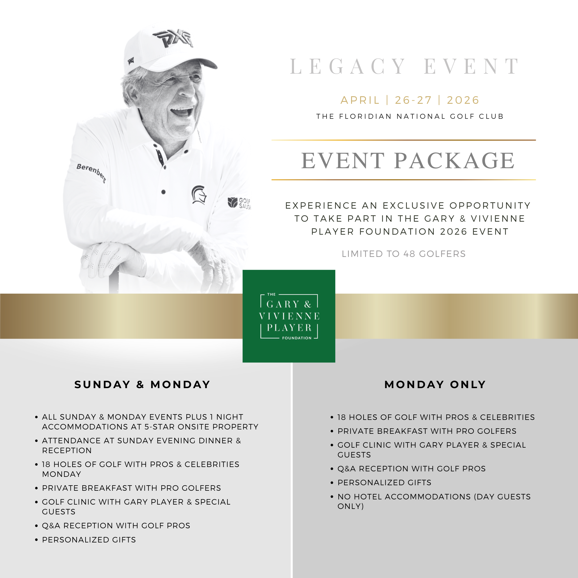 The Gary & Vivienne Player Foundation is a charitable organization identified under Section 501 (c)(3) of the Internal Revenue Service Tax Code. Contributions to the Foundation are considered a tax-deductible contribution. All donated funds go to toward lifting children out of poverty through education, health and housing.